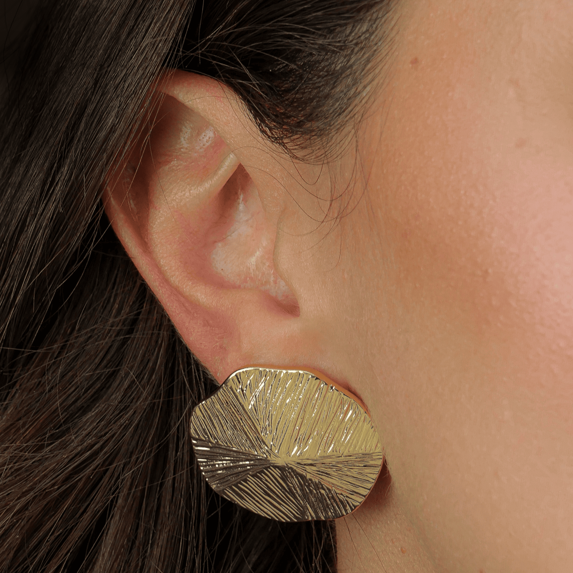 / Brinco Dourado de Círculo Assimétrico com Ranhuras