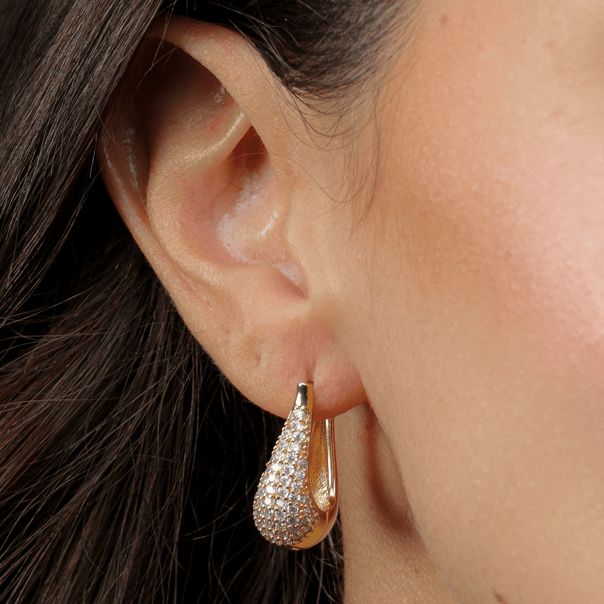 Brinco Dourado Formato de Ferradura Cravejado de Zircônia