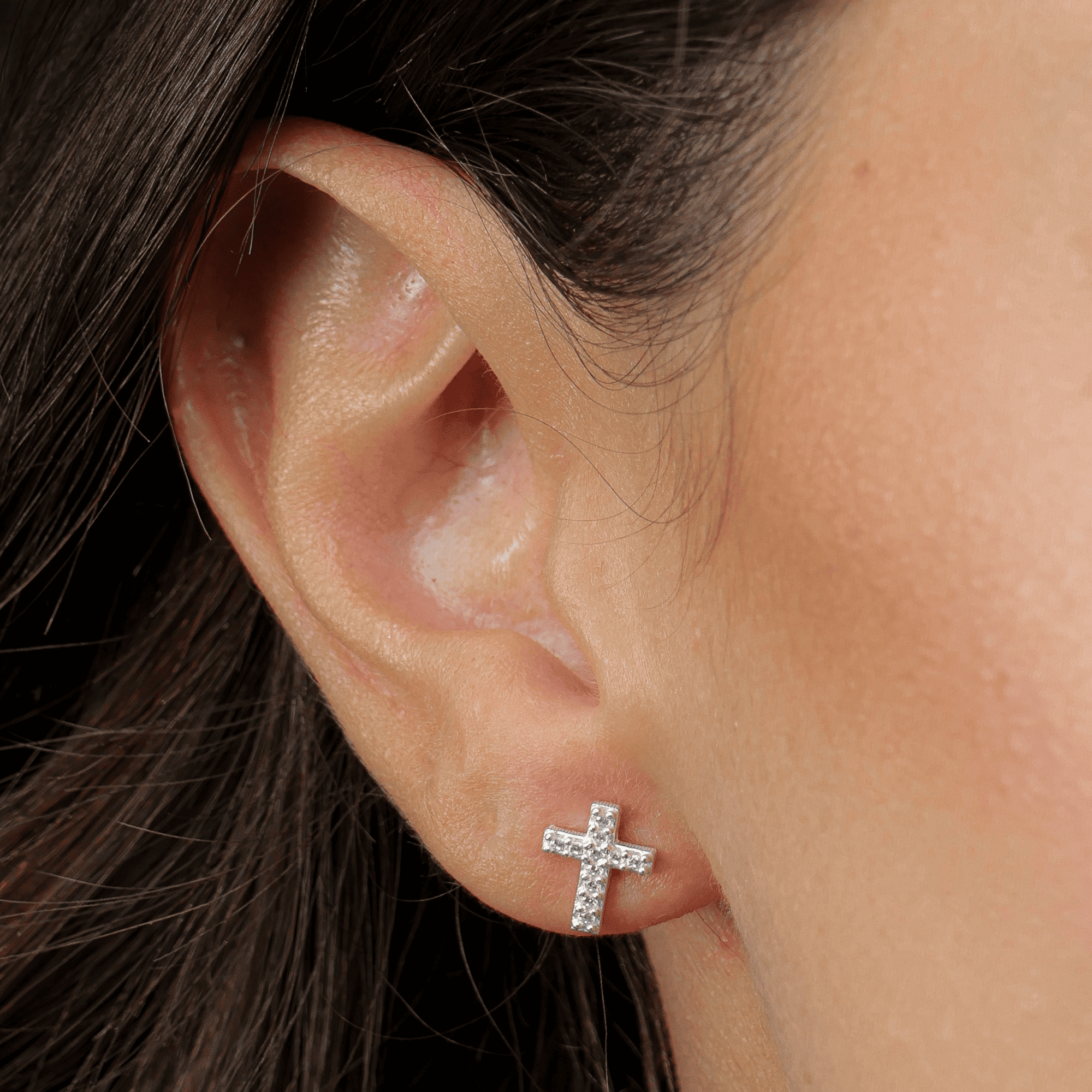 Brinco Religioso de Cruz Cravejado em Zircônias em Prata 925